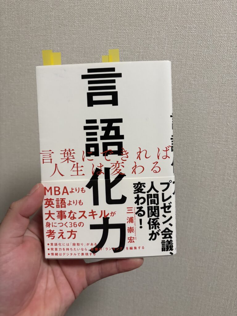 『言語化力』で特に面白いと感じたのは、話し方を“フォーマット化”することで説明力が一気に上がるという考え方だ。「僕が思うことは3つあって」と先に言い切るだけで、たとえ3つ揃っていなくても人間の脳は強制的に整理を始める。この“型を先に置く”発想は実践的で、すぐに使えると感じた。また、本書では比喩やユーモアを交えた表現も多く紹介されており、ビジネスだけでなく日常会話にも応用できる内容になっている。言語化は才能ではなく技術であり、型を使えば誰でも磨けるスキルだと実感させられた一冊だった。